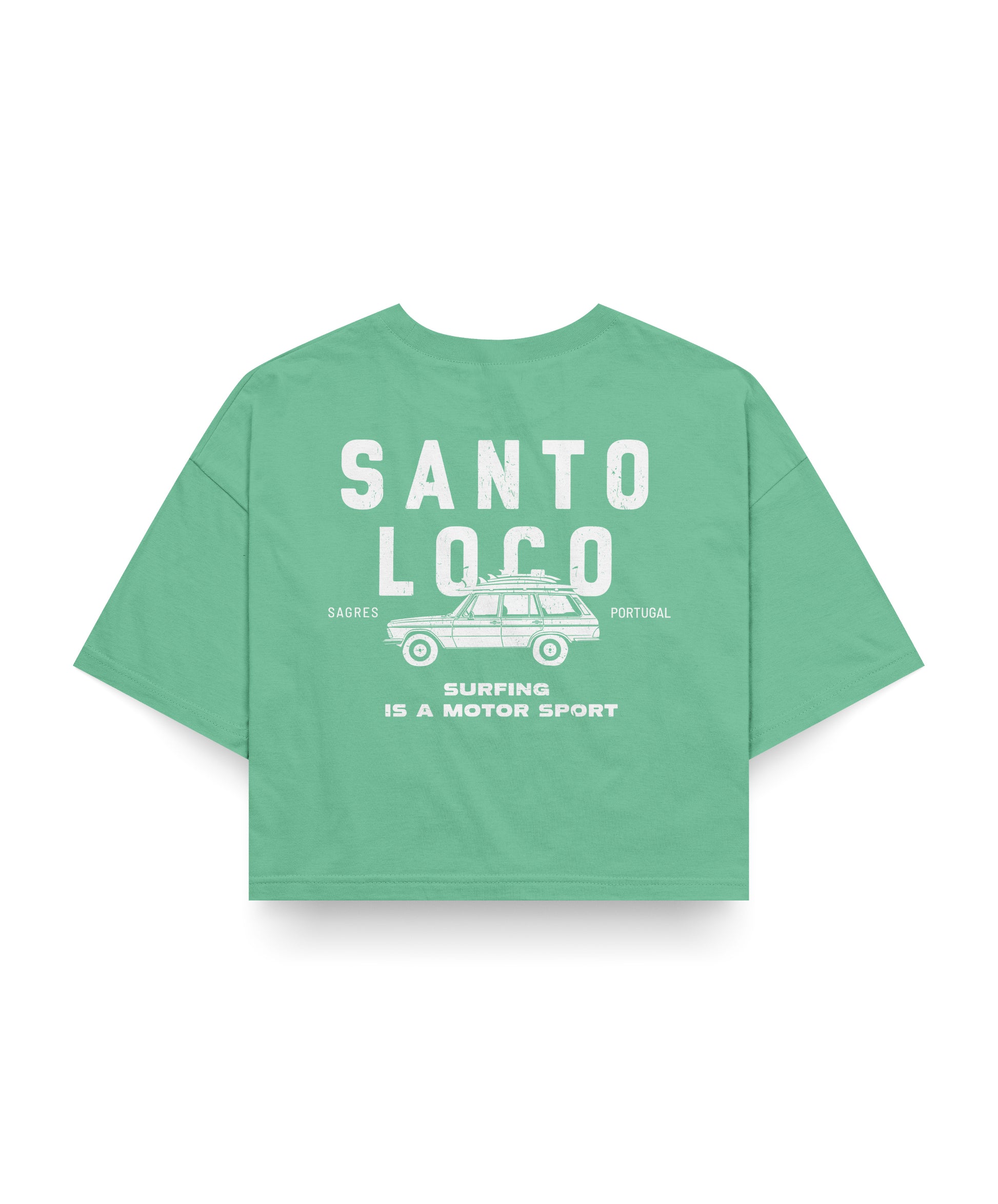 SantoLoco Sagres Surfing is a MotorSport Green Cropped T-Shirt